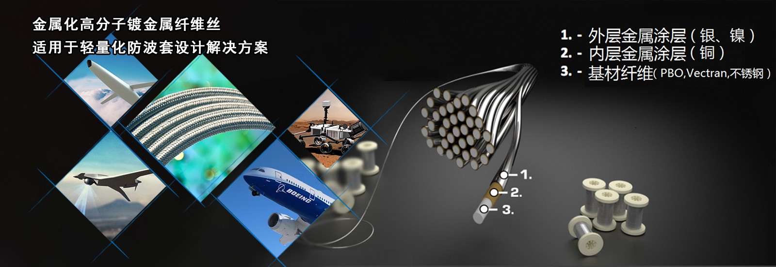 鍍金屬導(dǎo)電纖維絲是在高分子基材上雙層均勻涂鍍金屬,在航空航天線纜減重、機器人電纜屏蔽層、柔性天線、船舶拖曳電纜等減重和強度性能要求高的精密行業(yè)以更高的性能替代標準銅線,用作電纜、線束EMI屏蔽和專用導(dǎo)線。